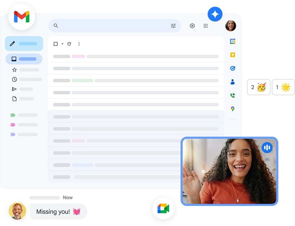 Gmail 现已集成 Google Chat、Google Meet 等服务,您可以在一个位置集中使用多项服务,从而达到事半功倍。